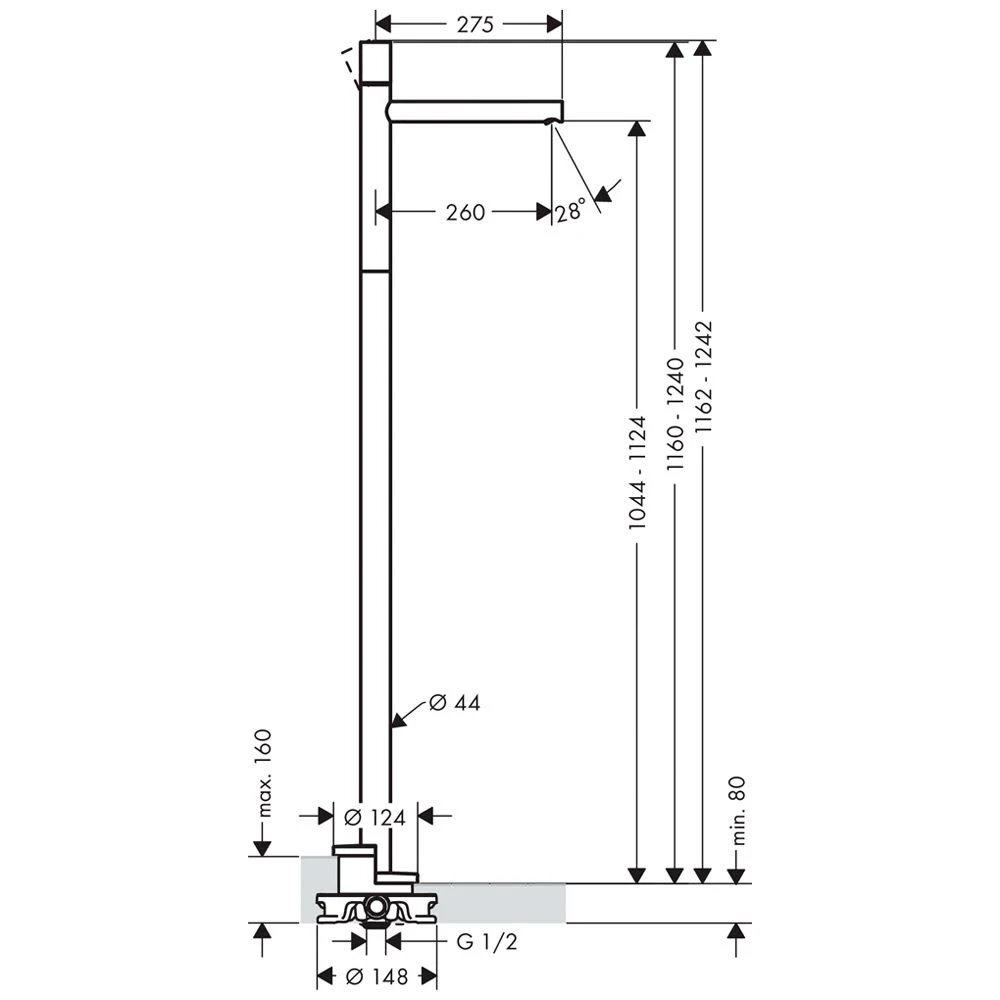 AXOR Uno Einhebel-Waschtischmischer bodenstehend mit Zerogriff und ohne Ablaufgarnitur