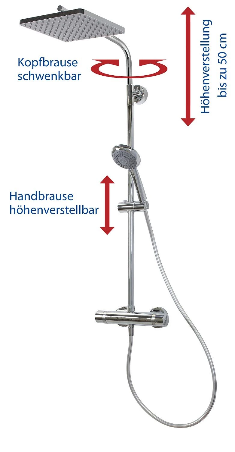 - mit großer eckiger Kopfbrause 25 x 25 cm