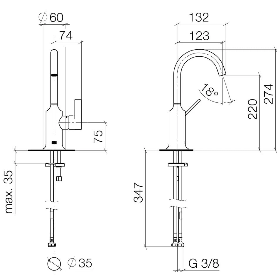 Dornbracht VAIA Waschtisch-Einhandbatterie ohne Ablaufgarnitur, Ausladung 12,3 cm