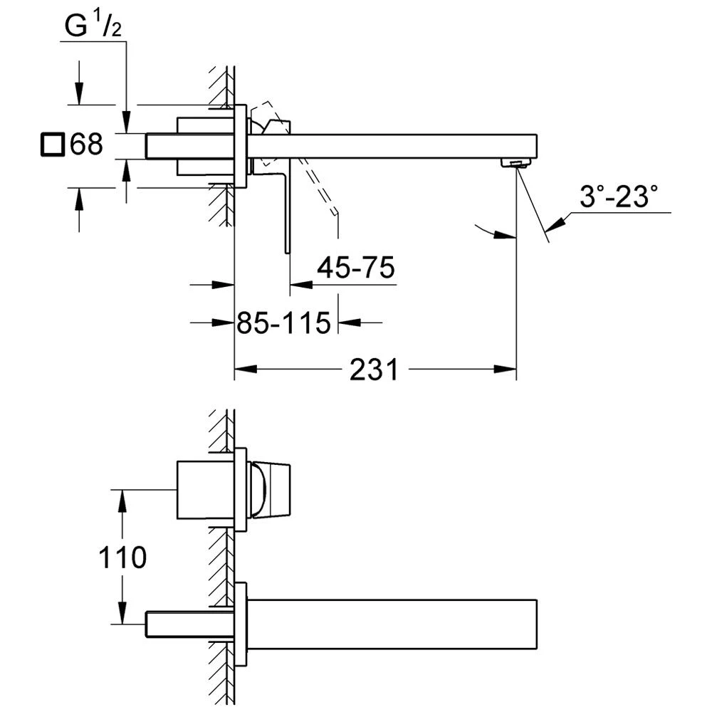 GROHE Eurocube 2-Loch-Waschtischbatterie Ausladung 23 cm