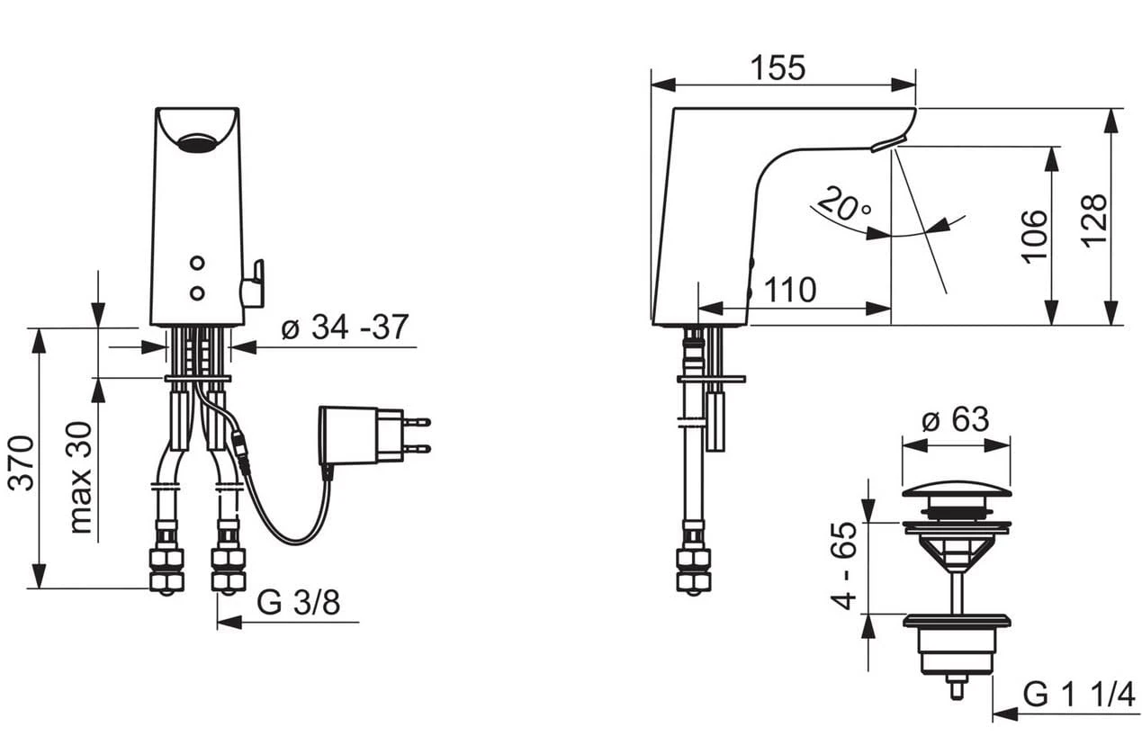 - mechanische Teile: Mischventil zur manuellen Temperatureinstellung, Rückflussverhinderer, Schmutzfilter