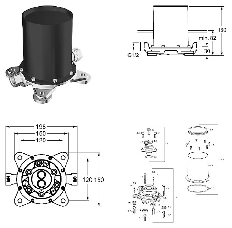 Hansa Hansavario Einbaukörper für Wannenbatterien, bodenstehend