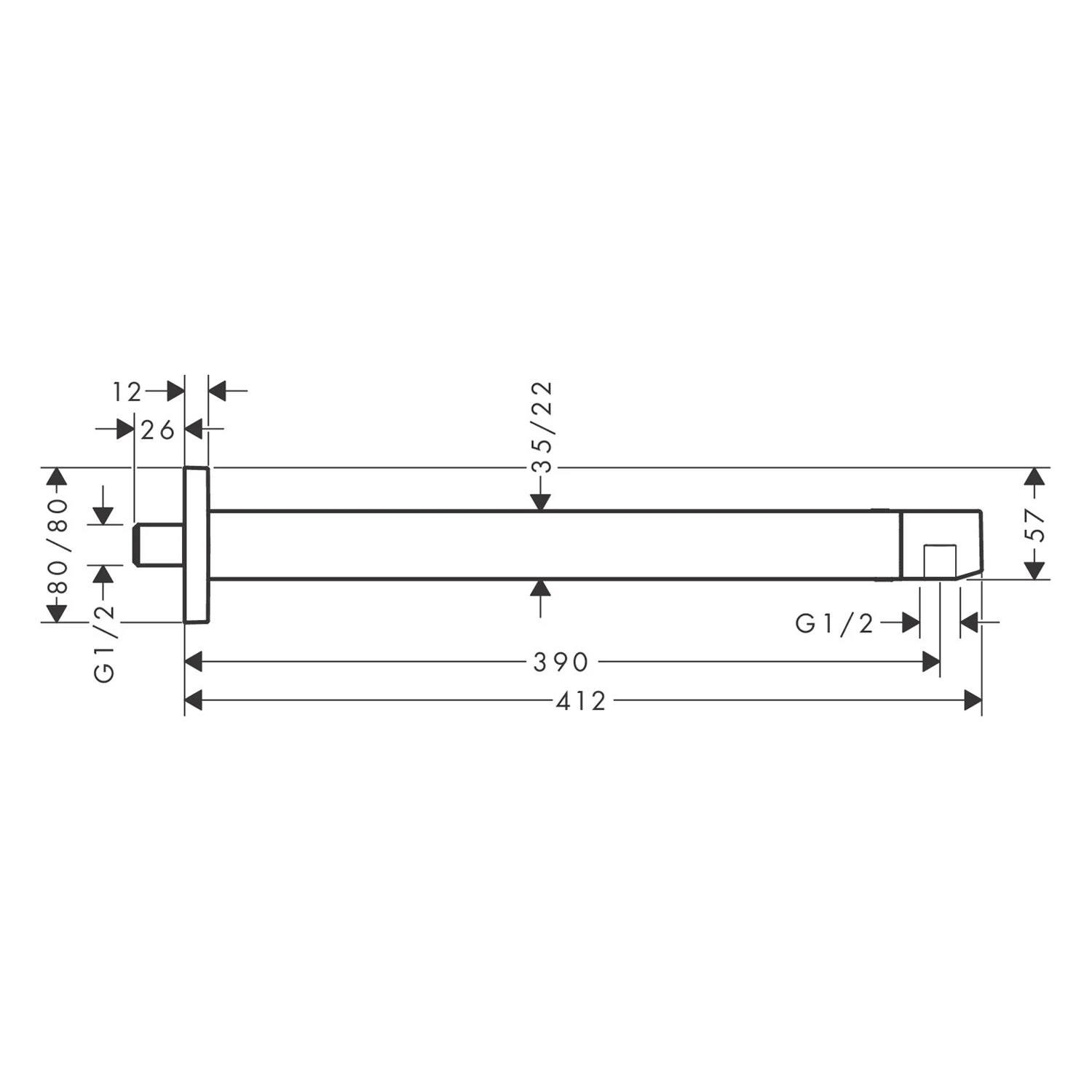 hansgrohe Brausearm E 39 cm, eckig