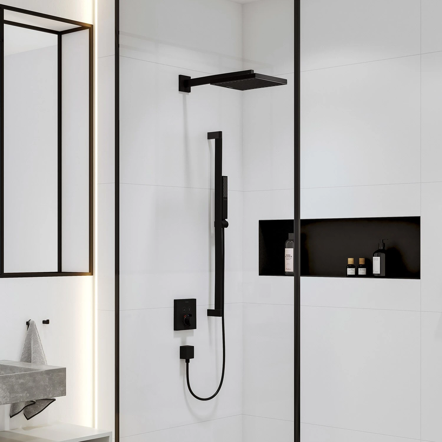 - kubisches Design in der Dusche mit PowderRain