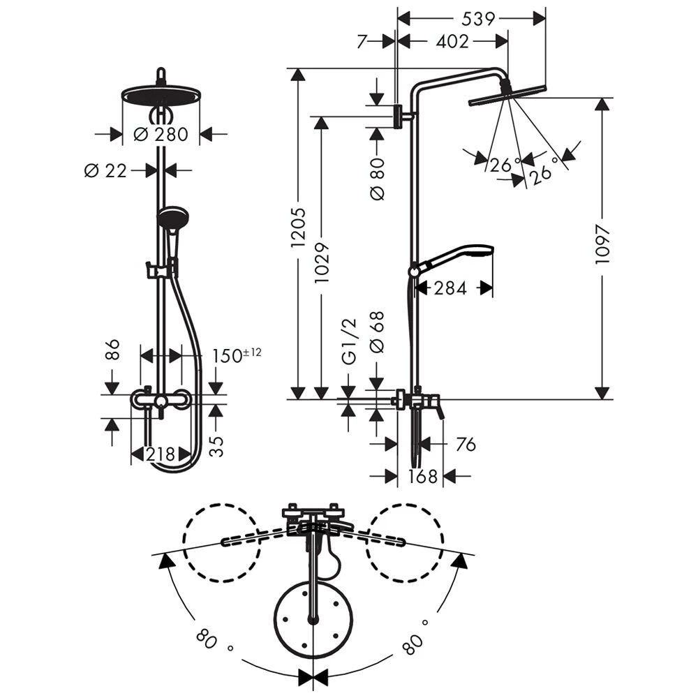 hansgrohe Croma Select 280 Air 1jet Showerpipe mit Einhebelmischer