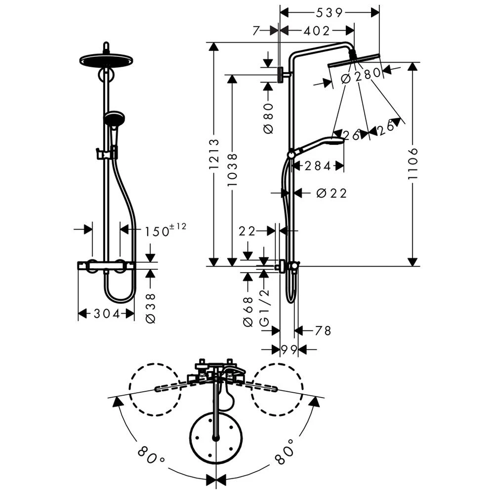 hansgrohe Croma Select 280 Air 1jet Showerpipe