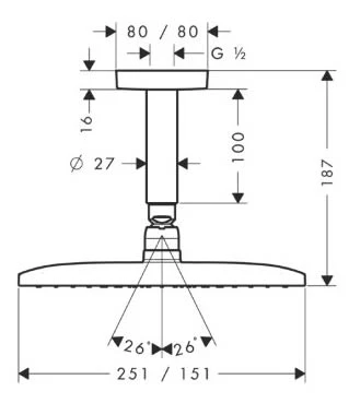 - Lieferumfang: Kopfbrause, Deckenanschluss, Anschlussnippel, Befestigungsmaterial, Montageanleitung