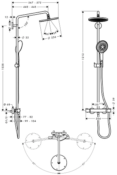 - Lieferumfang: Showerpipe mit Thermostat, Rosetten, S-Anschlüsse, Befestigungsmaterial, Montageanleitung