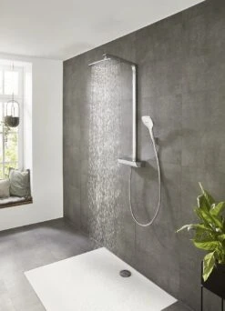 - Lieferumfang: Showerpipe mit Thermostat, S-Anschlüsse, Befestigungsmaterial, Montageanleitung