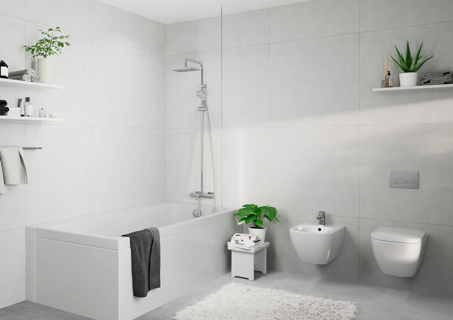 - besteht aus: Kopfbrause, Handbrause, Wannenthermostat, Brauseschlauch, Handbrausehalterung