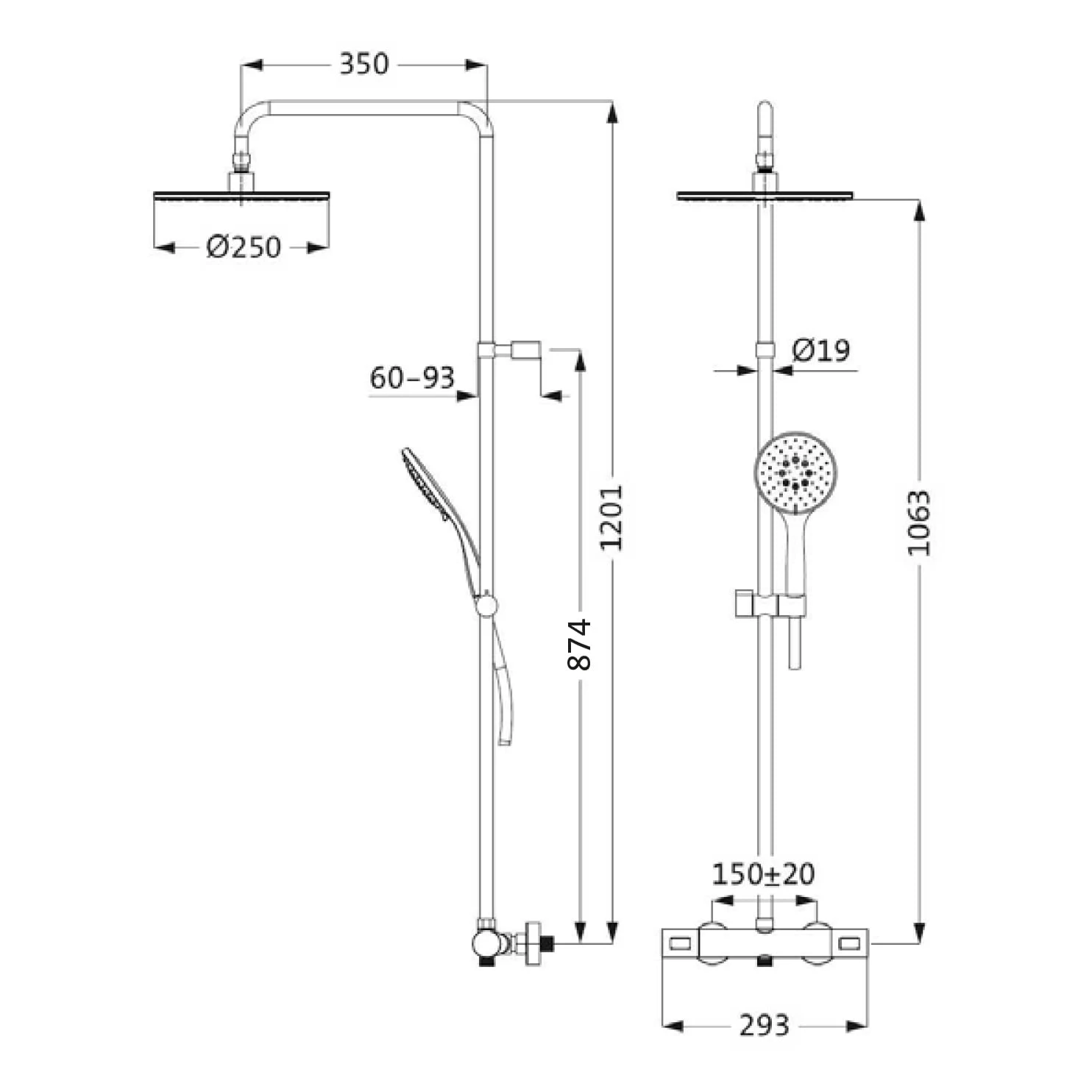Herzbach DEEP Duschsäule mit Brause-Aufputz-Thermostat, Regenbrause rund Ø 25 cm