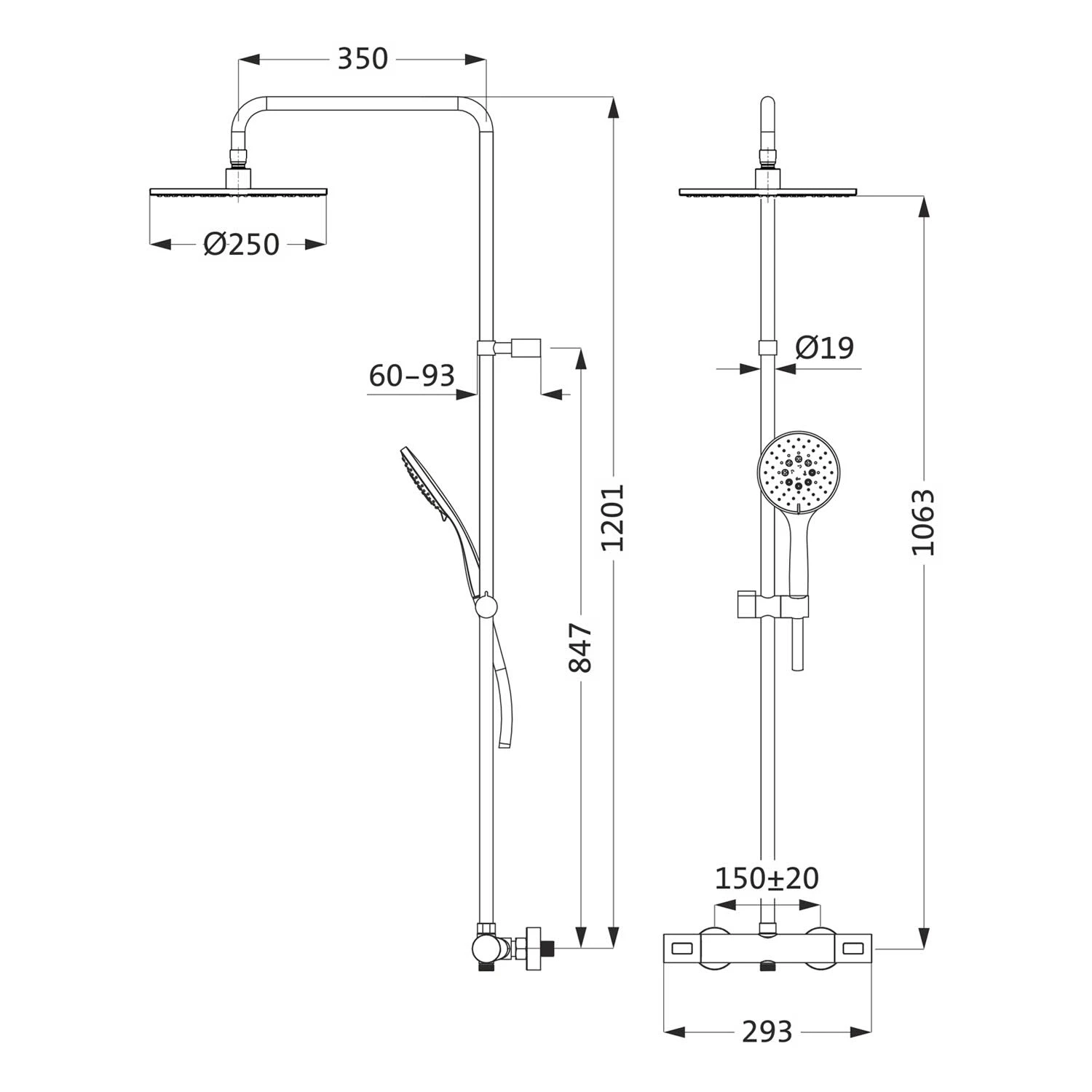 - Brausearm 35 cm (nicht schwenkbar)