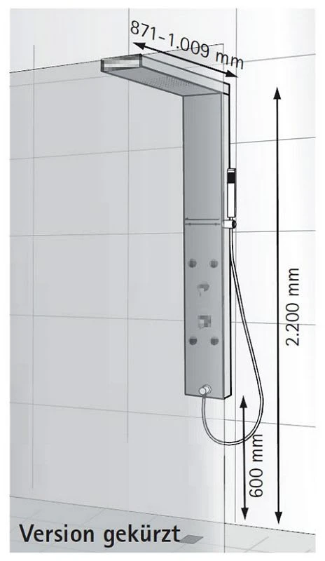 - Tiefe 87,1 – 100,9 cm (Wand bis Mitte Glas)