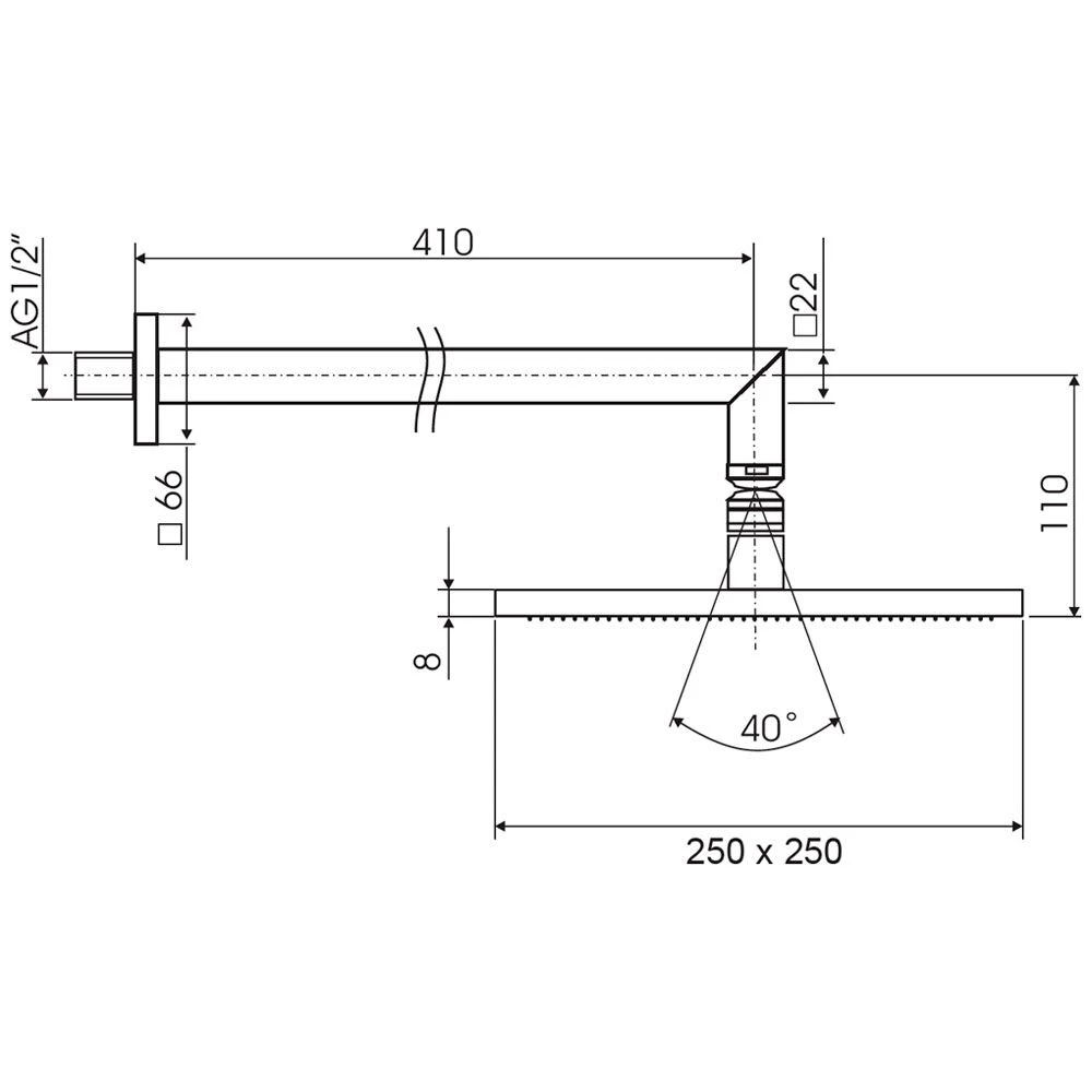 Kaja Aquadrat-Regenbrause 25 x 25 cm mit Wandarm