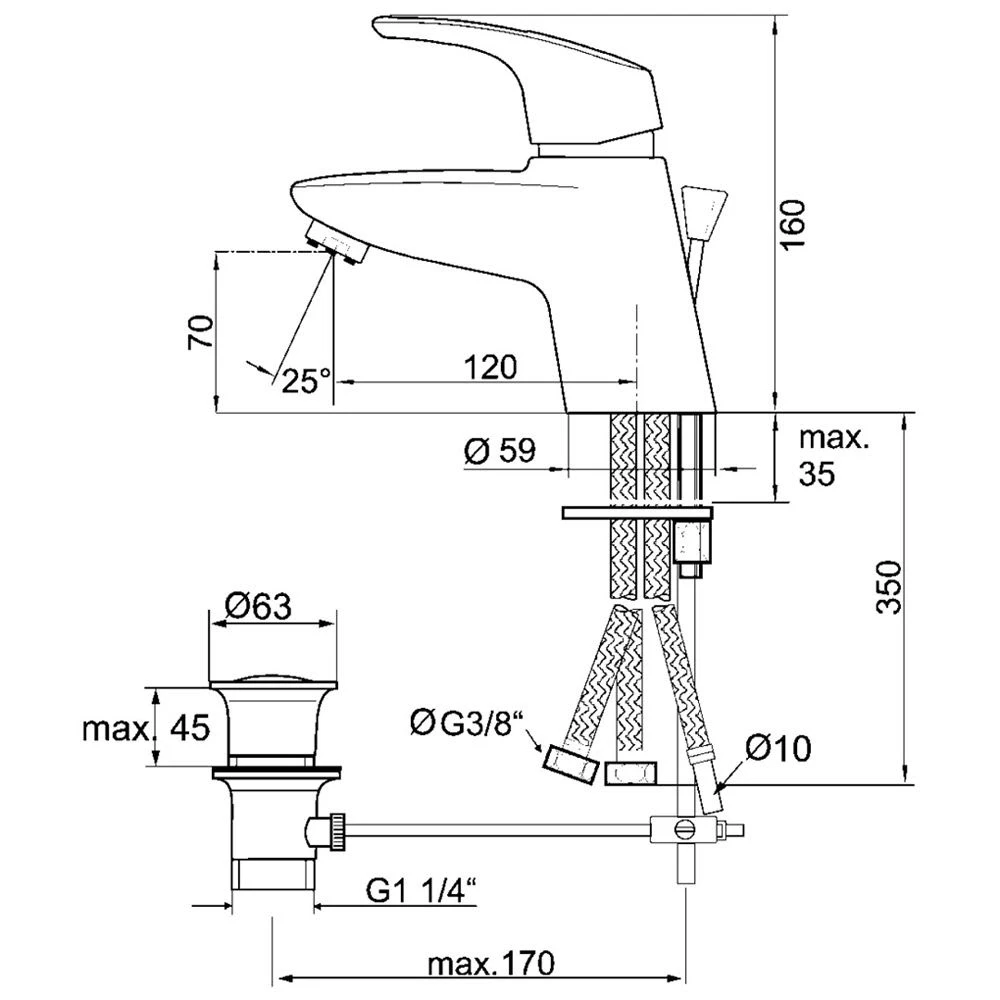 Kaja MIX Einhand-Waschtischarmatur mit Ablaufgarnitur, Niederdruck