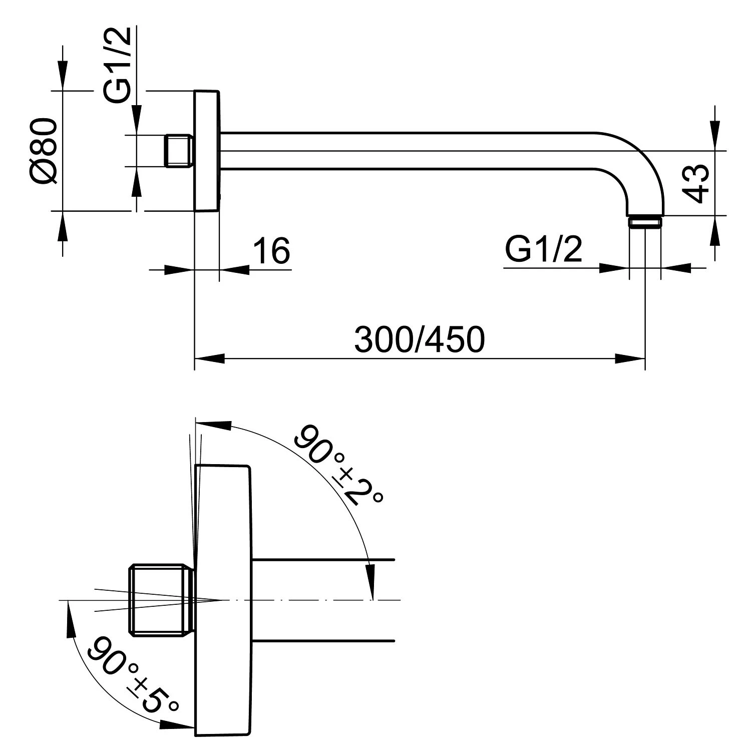 Keuco Black Selection Brausearm für Wandanschluss, Ausladung 30 cm, rund