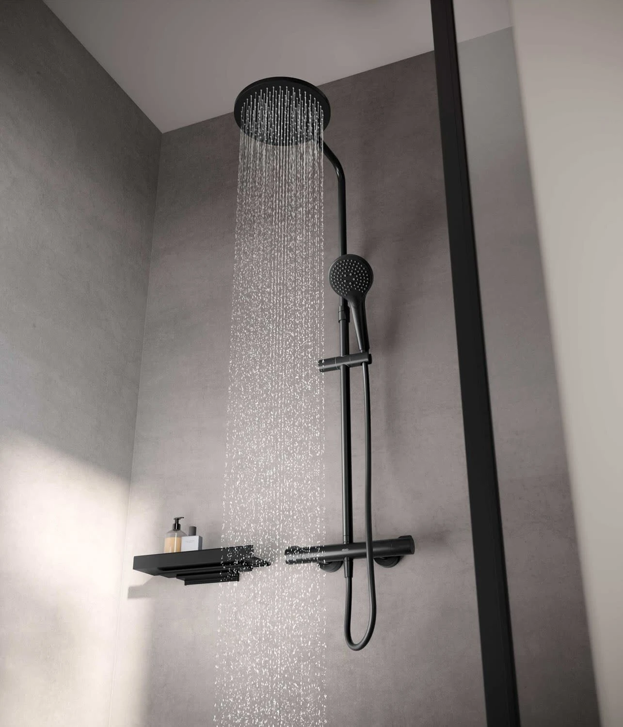 - Kopfbrause (rund, 250 mm) höhenverstellbar und schwenkbar