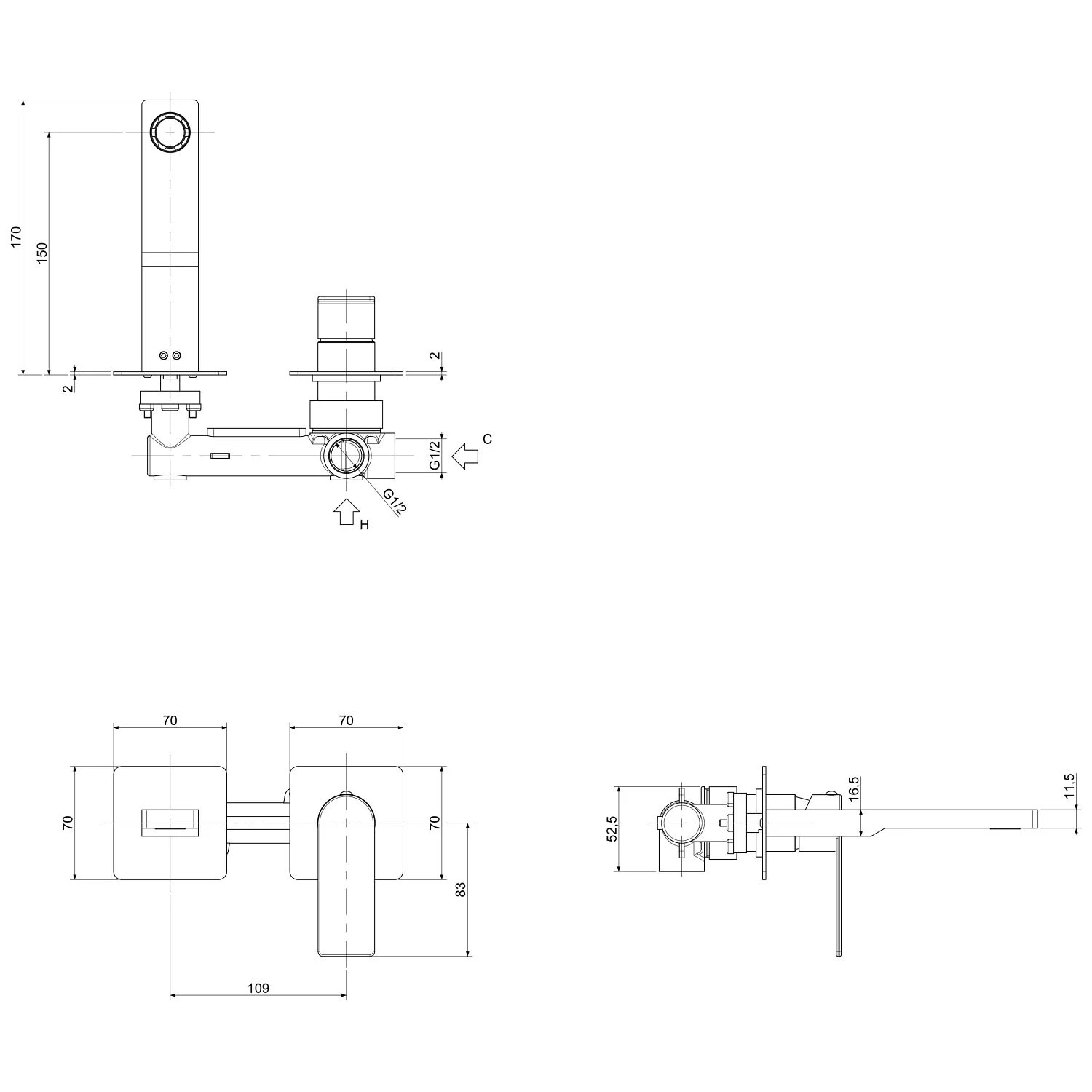 Kronenbach Omega 2.0 Waschtisch-Wandarmatur Ausladung 15 cm inkl. Grundkörper