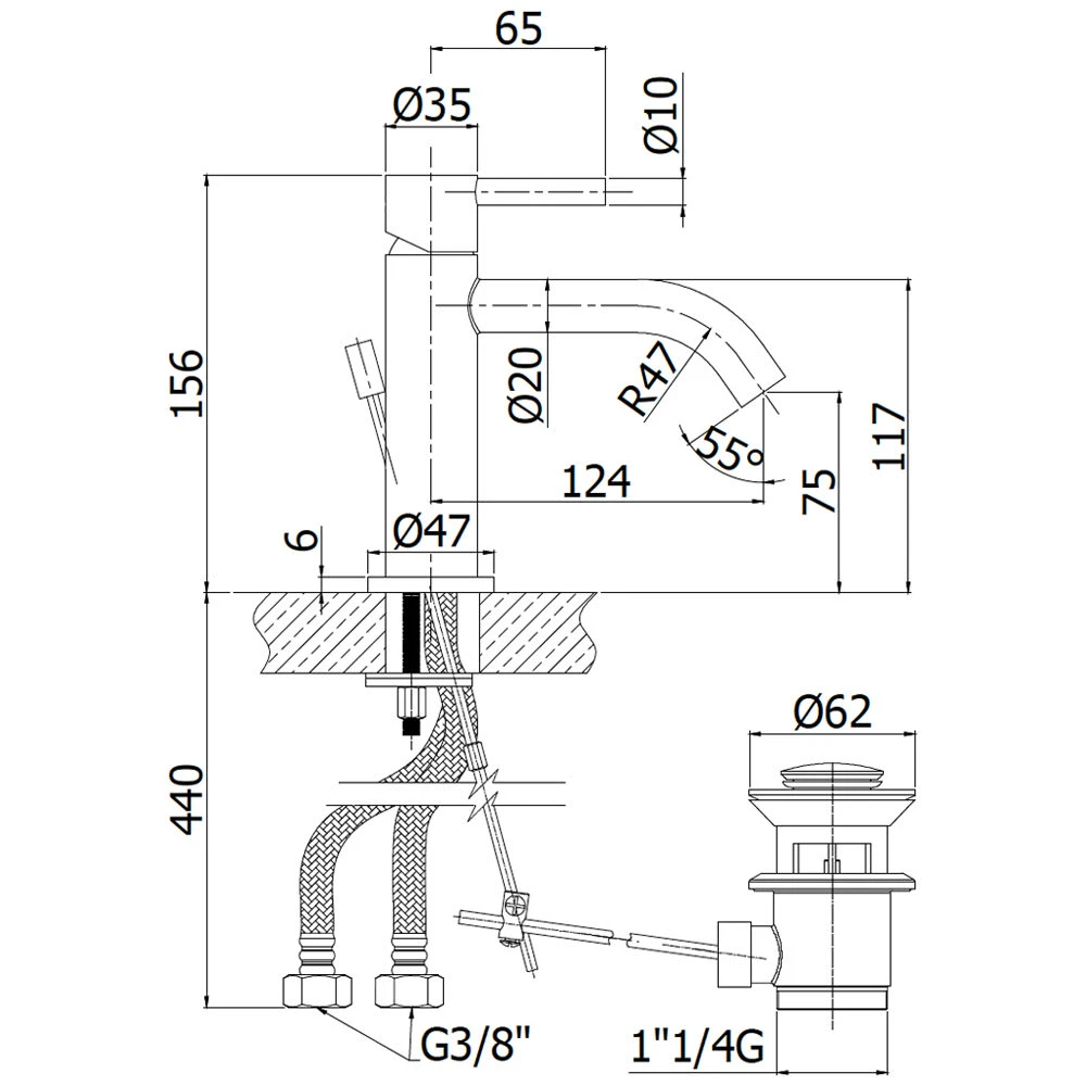 - flexible Anschlussschläuche G3/8″