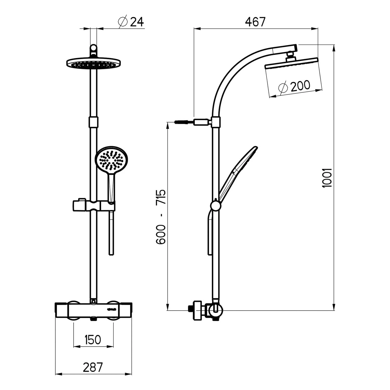 Sturotec Eco-Line 6 l/min Duschsystem rund mit Thermostatarmatur und Kopfbrause 20 cm